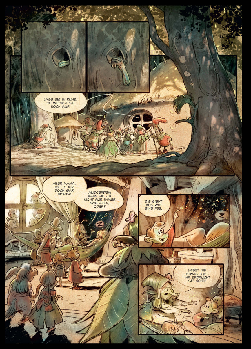 Aufregung im Dorf des Kleinen Volkes! Über Nacht ist eine junge Frau aufgetaucht, hier, mitten im Wald! Ist sie eine Fee? Eine Hexe? Oder einfach ein Mädchen, das sich im Wald verirrt hat? Als sie aufwacht, kann sie sich an nichts erinnern. Nicht an ihren Namen und nicht daran, woher sie gekommen ist. Aber nach und nach erwachen Kräfte in ihr, die sie nicht vollständig kontrollieren kann, und sie begibt sich auf die Suche nach Antworten auf ihre Fragen. Selbst wenn sie dabei an Orte des Waldes vordringen muss, die niemand betreten darf.