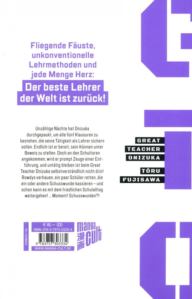 Unzählige Nächte hat Onizuka durchgepaukt, um alle fünf Klausuren zu bestehen, die seine Tätigkeit als Lehrer sichern sollten. Endlich ist er bereit, sein Können unter Beweis zu stellen. Doch an den Schultoren angekommen wird er prompt Zeuge einer Entführung, und untätig bleiben ist beim Great Teacher Onizuka selbstverständlich nicht drin! Rowdys verhauen, ein paar Schüler retten, die ein oder andere Schusswunde kassieren - und schon kann es mit dem friedlichen Schulalltag weitergehen! ... Moment! Schusswunden?!