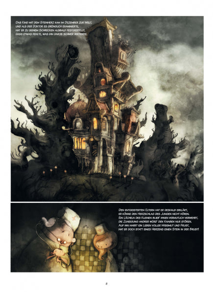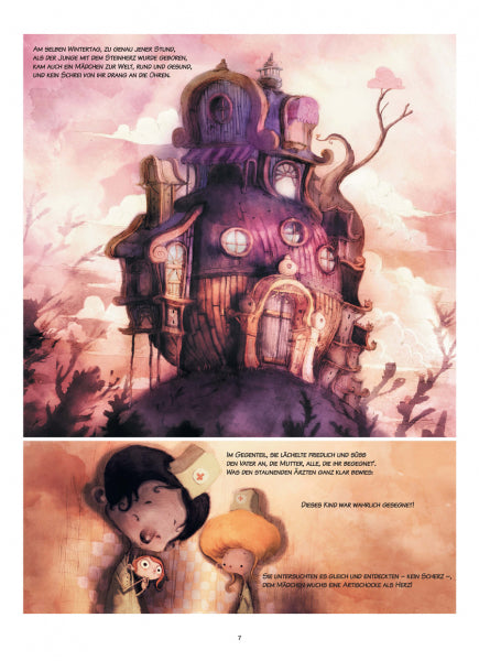 Das Mädchen mit dem Artischockenherz hat genug Liebe für die ganze Welt, aber ganz besonders liebt sie den Jungen mit dem Herz aus Stein. Darum schenkt sie ihm jeden Tag ein Stückchen ihres Herzens, und jeden Tag reißt er es in kleine Fetzen. Das Herz des Mädchens wird kleiner und kleiner, und eines Tages verliert sie die Freude am Leben. Warum nur will der Junge mit dem Herz aus Stein sich nicht lieben lassen?