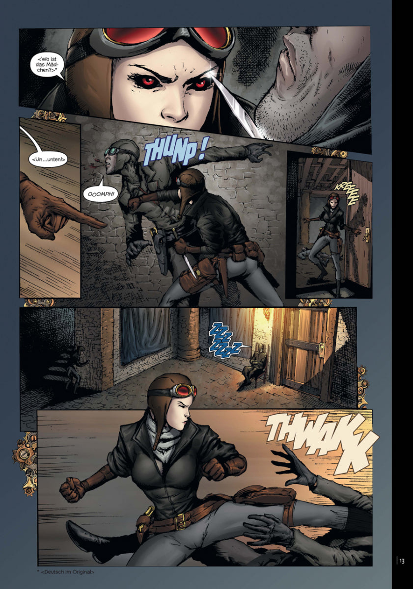 Die junge Frau weiß weder ihren Namen noch irgendetwas über ihre Vergangenheit, und schon gar nicht, wer ihr diese künstlichen Arme verpasst hat. Die allerdings verschaffen ihr übermenschliche Kräfte, und so entschließt sie sich, das Beste daraus zu machen: Sie ermittelt auf eigene Faust überall dort, wo sich sonst niemand kümmert – oder traut. Immer in der Hoffnung, dabei vielleicht Hinweise auf ihre Herkunft zu finden. Und das in einem spätviktorianisch inspirierten Ambiente, in dem fanatischer Fortschrittsglaube und Fantastik eng miteinander verwoben sind. Ein Fortschritt, der buchstäblich über Leichen geht auf dem Weg zur Erkenntnis.