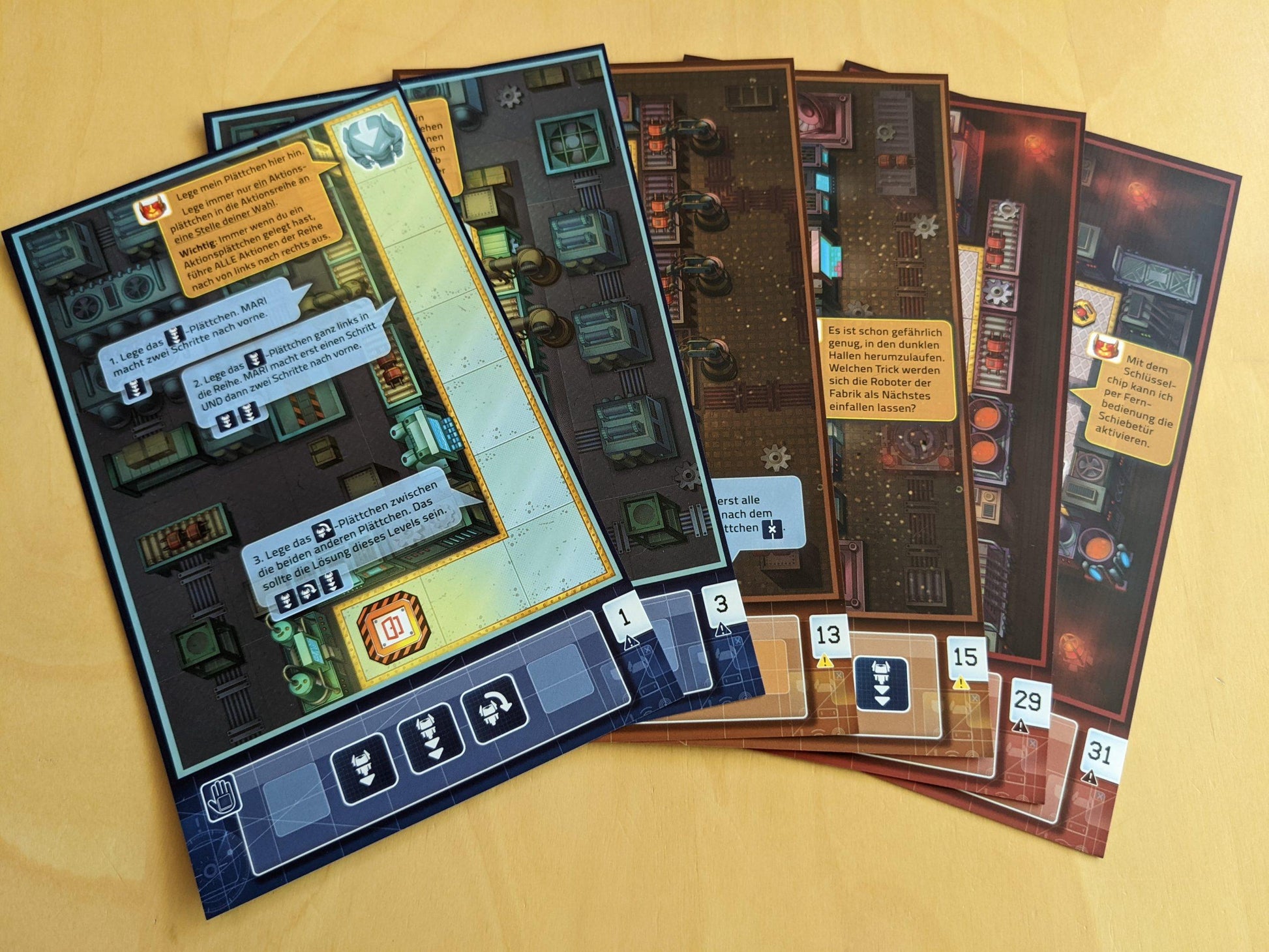 Im Solo-Abenteuer M.A.R.I. und die verrückte Fabrik löst du 40 einzigartige, immer anspruchsvoller werdende Level in der Roboterfabrik, in der M.A.R.I. (die Mobile Autonome Roboter-Intelligenz) nach einem schweren Gewitter „erwacht“ ist. Du musst vorausschauend planen, um Hindernissen auszuweichen und Aufgaben zu erfüllen, damit du am Ende mit M.A.R.I. im obersten Stock die Fabrik wieder in Gang bringt.