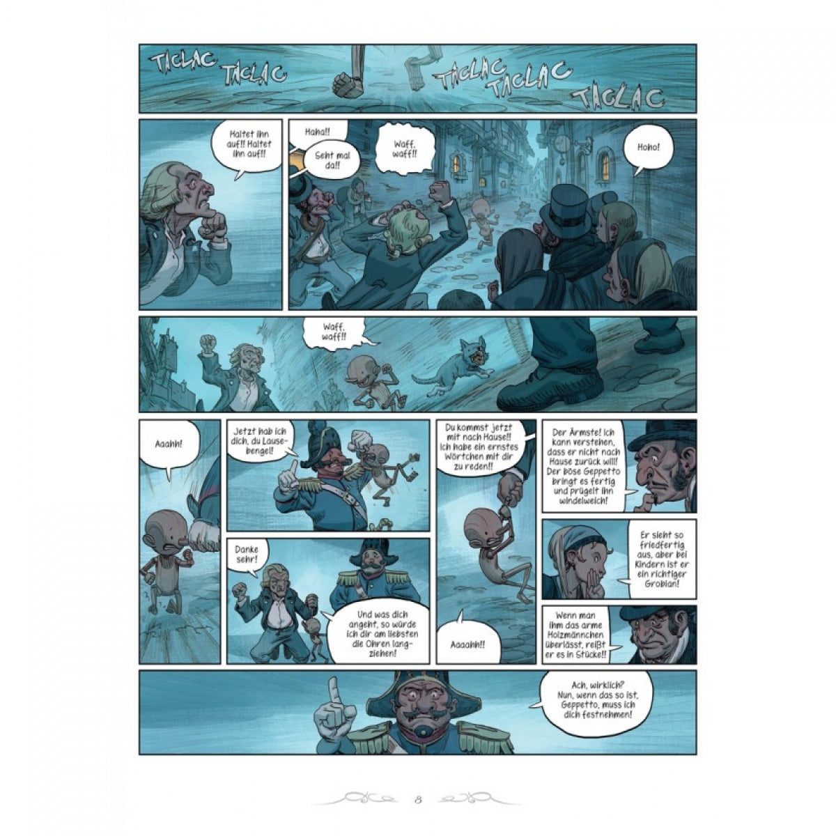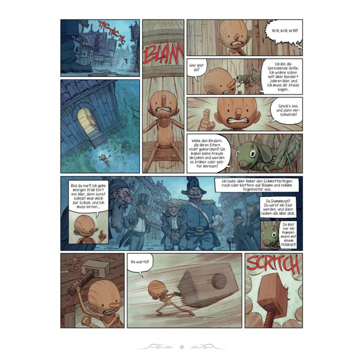 Der arme Gepetto beschließt, eine hölzerne Marionette zu schaffen, um seine alltäglichen Bedürfnisse zu erfüllen. Sein Freund und Kollege, Meister Antoine, beschafft ihm ein verzaubertes Stück Holz. Kaum ist er fertig, da beschließt Pinocchio, sich aus dem Staub zu machen, um am nächsten Tag nicht in die Schule gehen zu müssen. Als er wieder zu Hause ist, liest ihm die alte Grille des Hauses die Leviten und rät ihm, ein netter kleiner Junge zu sein. Ein Rat, der mit einem heftigen Schlag mit dem Holzhammer belohnt wird… Entschlossen, seinem alten Vater eine Freude zu machen, geht der kleine Holzjunge zur Schule. Auf dem Weg dorthin wird er magisch angezogen von einem Marionettentheater. Und so tauscht Pinocchio seine Schulfibel für den Zutritt zu diesem Ort ein, der ihn so sehr anzieht. Die Ankunft einer neuen Marionette bringt die laufende Vorstellung durcheinander. In der Hoffnung, so für Ruhe zu sorgen, beschließt der Hausherr, den Neuankömmling zu verspeisen. Trotz seiner Unverfrorenheit kann der kleine Junge Mitleid bei dem Herrn wecken, und dieser lässt ihn frei und gibt ihm sogar eine Handvoll Goldstücke. Auf dem Weg nach Hause begegnet Pinocchio im Wald zwei Reisenden, die ihm raten, die Goldstücke in der Erde im Land von Niguedouilles zu vergraben, um seinen Besitz zu verdoppeln. Und so folgt der freundliche, aber naive Junge seinen beiden neuen Freunden, um sein Glück zu finden und seinen Vater zu beglücken.