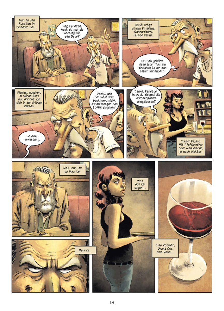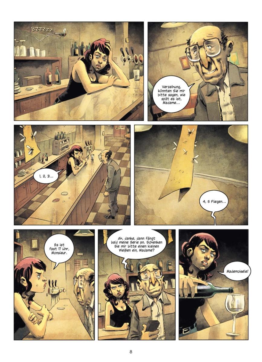 Tag für Tag steht sie allein hinter ihrem Tresen. Nur die summenden Fliegen und die ewig schwafelnden Kunden stören ihren gleichförmigen Alltag. Sie langweilt sich zu Tode, in dieser Bar, mit dieser Mission, die sie sich nicht ausgesucht hat, die sie nicht einmal versteht. Was zur Hölle machst du hier, Fanette? An diesem Ort, der so leer und tot ist wie deine Augen? Und warum ist es so wichtig, diesen verlotterten Alten im Auge zu behalten?